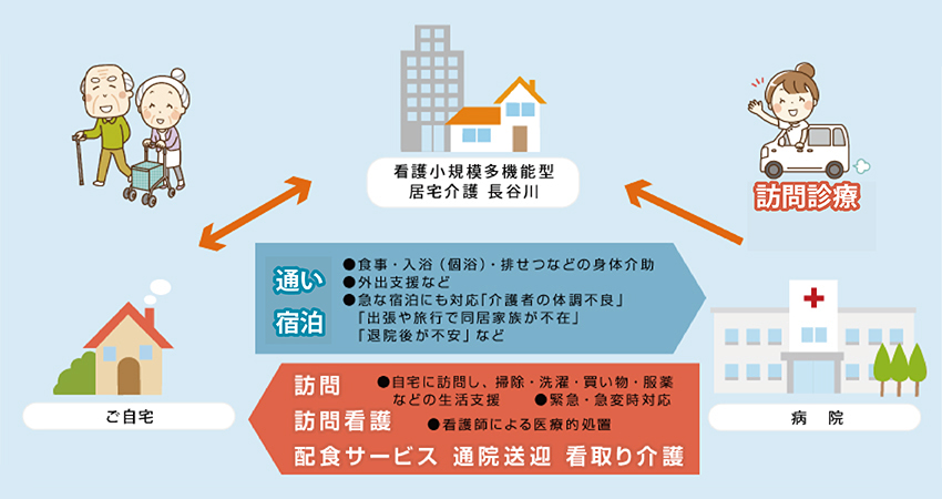 | 登録定員 | 複合型サービス長谷川29名 看護小規模多機能型居宅介護長谷川24名 |
