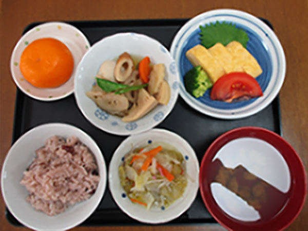 管理栄養士の元、バランスのとれた献立を建物内の厨房で作り、温かく美味しい食事を提供しています。