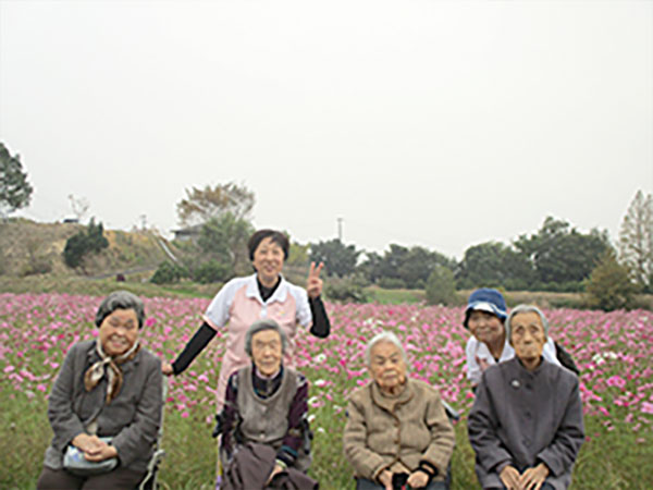 年に3~4回実施し、四季折々の花を観たり、自然にふれ、気分転換を図ったりしながら、屋外での歩行訓練の場にしております。